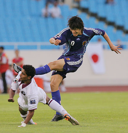 今日は絶対に負けられません!! ということで今夜はレポートブログです。 コンディションは気温33度、湿度85%。 そして芝は深いし、ボールが転がらないし、 土は悪いし、拡声器を使われるし、アウェー状態です。 前半22分ショートコーナーから 俊輔のアシストでヘディングゴール! 更に27分サイドチェンジを繰り返して 崩して高原2点目! 高原最高! 42分遠藤がアフタープレーでGKに倒されてPK。 俊輔が落着いてゴール。日本3-0で大きくリード♪ 前半を観ていてだんだんと選手の負傷が心配です。 激しい試合になるのは解るけど。 案の定、UAEは激しいラフプレーが多く、 後半8分とうとうUAEにレッドカード。 UAE3人目の交代後はラフプレーが少なくなりました。 しかし21分カウンターを喰らって失点(>_<) また、後半に失速?悪い予感は外れて欲しい! 耐える時間帯を耐え抜いて 最後は無理な攻撃を仕掛けずに逃げ切りました。 次は地元ベトナム戦。 完全アウェーですが頑張って勝って 決勝トーナメントへ一位突破して欲しいですo(^o^)o PR