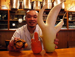 12/13/23:52 ジャンケンポン♪「グー、チョキ、パー」とじゃんけんの形をした 3種の野菜を見つけました。 茨城県水戸市のそば屋さん 「そばまさ」の店長が見つけたそうです。 実家の畑で偶然にも、パーの形の大根、 チョキのニンジンを収穫したそうで 『グーもあれば、じゃんけんができる』と里芋をグーにしています。 野菜を使って子供客とじゃんけんで遊んでいましたが 今週明けにはグー、チョキ、パーがけんかしないように 仲良くけんちん汁の具にするらしいです。 つまり今日の時点ですでにお客さんの胃の中に収まっているんですね。 生鮮野菜ですから当然ですけどね。 野菜でジャンケンなんてやってみたいですね(*^_^*)