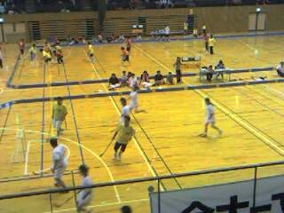 知らない方も結構いますんで説明がてら。 知ってる方は復習がてら軽く流してください。 正式名称はユニバーサルホッケー。 老若男女問わずに楽しめるレクレーションスポーツとしてスタートしました。 アイスホッケーを体育館で出来るようにしたミニホッケーといった感じです。 コートサイズはバスケットボールコートぐらい。 正式ルールでは男女各3人の混成でチームを構成します。 しかし、愛知県では競技者人口に対する男女の比率から 男性4人女性2人のローカルルールを採用したいます。 他にもローカルルールはありますが。 ボールはプラスティック製で非常に軽く当たっても痛くないようにしてあります。 ボールを打つスティックもプラスティック製です。 そのスティックも危険防止のため膝より上への振り上げ禁止。 更に危険防止の為、チャージ等の接触プレーは禁止です。 男女混合でやるわけで体力差を考慮すると大事なルールです。 あとはボールを蹴らないこと、 ゴール前の進入禁止エリアに入らないこと、 ってとこでしょうか。 こまかいルールは他にもありますが。 ノーファール、ノーラフプレーで楽しくプレーすることが大事ですね。 それがボヤッキーズのモットーですけどね☆
