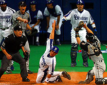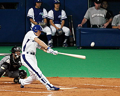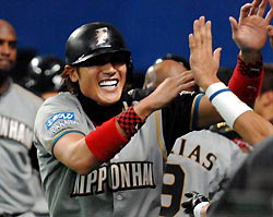 10/22/19:34 日本シリーズ第二戦やっぱり見逃せないので今日もレポートブログです。 先発は大方の予想通り 中日・山本(昌)、日ハム・八木。 職人・超ベテラン VS スーパールーキー。 森本がブラインドになったので 名手井端でもライナーを落球してもおかしくないです。 しかし、自分のミスだと思った井端のホームランですぐ同点。 う~ん、このシリーズ井端が魅せてくれるo(>_<)o その後は両投手ともに立ち直り投手戦に。(19:00) 4回福留に待望のホームラン。 5回は両チーム共にチャンスをつくるが両投手共に踏ん張る。 7回とうとう山本(昌)が捕まり 日ハムが金子のタイムリーで逆転。 山本(昌)の粘投も力尽く。 今シリーズも勝利投手になれず。 山本(昌)のジンクスなんだろうか?(20:45) 8回とうとうダメ押しのセギノールのホームラン。 4時間におよぶ第二戦は結局5-2で日ハムの勝ち。 これで日ハムに勢いがつくか? 北海道での試合は中日にとっては完全アウェイ。 劣勢になるのは間違いないですが 名古屋へ戻ってきてほしいです。