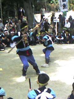 10/23/22:57 村祭りそこで奉納されたのは『棒の手』と呼ばれるものです。 昔からある庶民武術みたいで 幾つかの流派があるみたいです。 子供達の演舞は微笑ましいですが 大人の演舞は本当に戦っているかのような迫力! 暫らく魅入っていました。 そのすぐ近くでは火縄銃の実演が行われていました。 清掃→銃弾・火薬の詰込み→火付け→発射 詰め込み用の棒。 これで銃口から銃弾・火薬を詰込みます。 更に凄いのは発射音。 凄く耳の鼓膜が破れるかと思うほど。 下の写真の種火がついた棒で火付けして 発射するまでに時間が掛かりました。 戦国時代、三方ヶ原の戦いで 三段構えを考案したのも納得です。 400年前の戦国時代を垣間見たような気がしました。