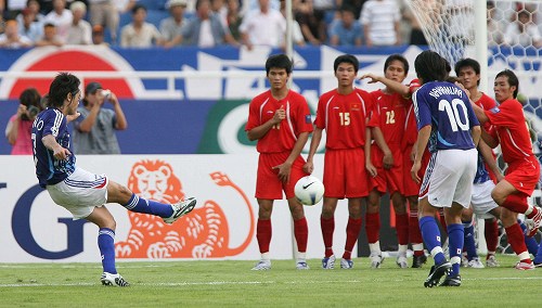 一位通過と二位通過では決勝での厳しさが全然違います。 今日もレポートブログです。 コーナーからいきなりオウンゴール(>_<) ヤ、ヤバイ。 でも直後の12分、 ここから仕切り直し。 31分高原が倒されて得たFKを遠藤が決めて逆転。 鋭い一発が決まりました。 俊輔のミドルシュートで3点目♪ 気持ち良い!(^o^) これで余裕ができました。 そして止めは14分、左サイド深い位置からのFK。 遠藤の鋭いボールを巻が競り勝ってゴール! これで勝負あり。無事に一位突破を決めました。 今回の試合でベトナムの戦いぶりを観ていると 旋風を起こしてるのもうなずけました。 ベトナムも決勝頑張ってほしいです。 そしてオシムJAPANも3連覇へ向けてガンバレ!