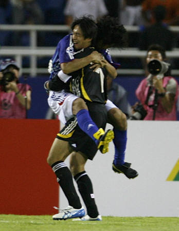 昨年・W杯の雪辱の時が来ました。 3連覇に向けても負けられません! 前半はお互いの持ち味を出しながらも お互いがしっかり研究してきているのでスコアレスドローで折り返し。 後半戦は日程・会場のアドバンテージを生かして欲しい! 流れがオーストラリアへ。ヤバイ。 23分、コーナーから低いボールが ファーポストへ流れて失点! しかし、直後の26分高原が決めて同点! オーストラリアにレッドカードが出て 最後までゴール前を固められてPK戦。 GK川口がファインセーブで2本セーブ! 4-3でどうにかこうにか勝てました。 次は準決勝。ガンバレ日本!